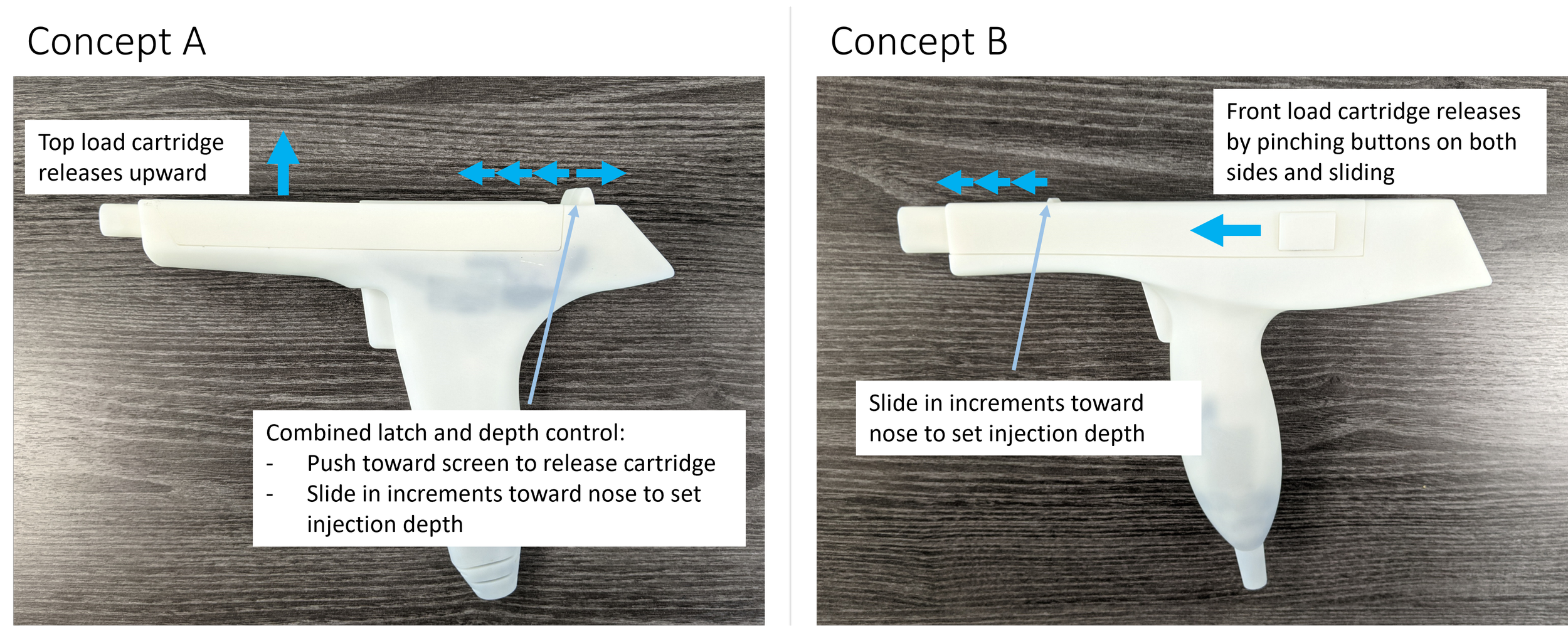 Handpiece prototypes were rapidly developed, tested, and iterated upon based on user feedback. Using this process we honed in on a user interface design that allowed for reusability of the handpiece and simplified the procedure and setup.